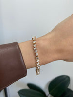 Featuring round, oval, marquise, pear and emerald cut diamonds, this prong set tennis bracelet is a masterpiece!