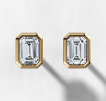 These bezel set studs are the perfect mount to showcase the emerald cut diamonds of your choice. Radiant cut diamonds can also be selected for this setting.