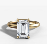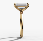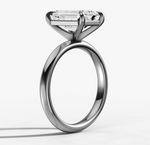 The sloping sides converge to form a delicate knife-edge, giving the band a slender, refined appearance. This timeless design remains a popular choice for showcasing an emerald cut diamond.