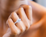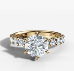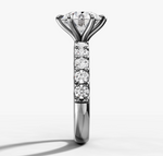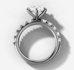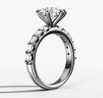 This striking diamond band, paired with the elegant round brilliant cut centre diamond, is a true showstopper. With its bold presence, this ring is sure to turn heads from across the room!