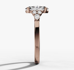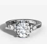 Experience our unique interpretation of the classic trilogy design, featuring a pear and two round diamonds to create an elegant frame for the centre oval cut diamond.