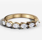 This stunning wedding ring features 0.10ct pear cut diamonds, prong set in an east west orintation to add modern flare. The band is crafted from high-quality metal and is perfect for wearing alone or stacking with other rings.