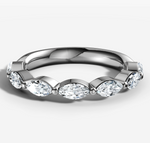 This stunning wedding ring features 0.12ct marquise cut diamonds, prong set in an east west orintation to add modern flare.The band is crafted from high-quality metal and is perfect for wearing alone or stacking with other rings.