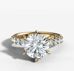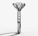 Our signature diamond band! This shared prong setting allows for maximum light exposure, enhancing the sparkle of the diamonds while maintaining a sleek and modern silhouette.