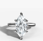 Our most loved solitaire engagement ring! This prong-setting is the perfect way to show off this stunning Marquise Cut Diamond shape, elevated further by the slim band. It makes the stone look like it’s floating on your hand, and the prong setting lets light shine through from every angle.