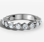 This stunning wedding ring features 0.05ct round brilliant cut diamonds, single prong set in an elegant setting. The band is crafted from high-quality metal and is perfect for wearing alone or stacking with other rings.