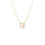 This Diamond Circle Necklace with Clover Cutout is a modern and meaningful piece. The round pendant is fully set with sparkling round-cut diamonds, forming a circle of light. Inside, a charming clover-shaped cutout adds a playful and lucky twist.