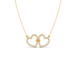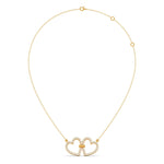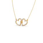 Celebrate love and connection with this Double Heart Diamond Necklace. Designed with two open hearts tied together with a beautiful gold knot, this necklace speaks of eternal love and unity.