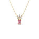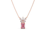 Turn heads with JewelVerra’s Pink Radiant-Cut Diamond Pendant Necklace, a glamorous statement piece featuring a bold radiant-cut pink gemstone surrounded by baguette and round diamonds, crafted in yellow gold. Perfect for luxury lovers and unforgettable gifting.