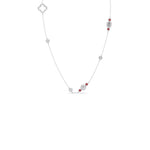 Modern station-style diamond necklace with pops of red stones