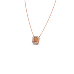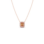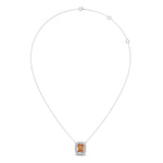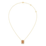 Shine bright with this stunning emerald-cut orange sapphire necklace, beautifully surrounded by a halo of sparkling round-cut diamonds. Set in rich yellow gold, the bold orange gemstone brings a vibrant and regal feel to your everyday or evening look.