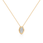 Add timeless beauty to your jewelry box with this Gold Oval Diamond Pendant Necklace from JewelVerra. Crafted in pure 14K yellow gold, this elegant necklace features an oval-shaped pendant filled with shimmering diamonds set inside a smooth gold frame.