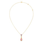 The combination of pink, purple, and diamond brilliance creates a vibrant and elegant piece. Set in yellow gold, this pendant is perfect for those who love joyful, feminine, and unique designs.