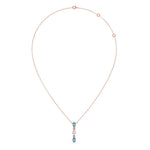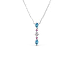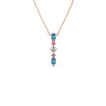 Make a colorful statement with this Vertical Gemstone Necklace, showcasing a perfect blend of oval-cut Blue Topaz, round-cut Pink Sapphires, and a sparkling round brilliant-cut Diamond at the center. Designed in a slim vertical bar style, it adds vibrant charm to your everyday or party outfits.