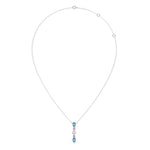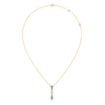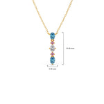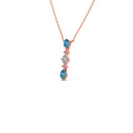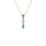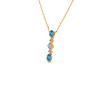 Elegant Vertical Gemstone Necklace with Blue Topaz, Pink Sapphires & Diamond – Yellow, Rose & Silver Gold | JewelVerra