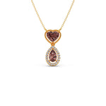 Add warmth to your look with this Brown Heart & Drop Pendant Necklace from JewelVerra. Featuring two beautiful brown gemstones β a heart-cut on top and a teardrop-cut below β both surrounded by a sparkling diamond halo. Crafted in a gold-finish chain, this necklace blends charm, elegance, and love.