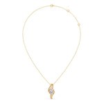 This Swirl Diamond Pendant Necklace captures timeless beauty with a brilliant round diamond embraced by flowing gold curves. Embellished with micro-pavé diamonds, it adds elegance and sparkle to every moment. A graceful statement from JewelVerra.