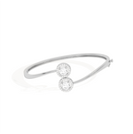 Add a touch of refined elegance with this yellow gold open bangle bracelet showcasing two round-cut diamonds, each framed in a halo of sparkling stones. A luxurious symbol of balance and brilliance, perfect for any occasion.