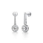White Gold Dangle Earrings – Round Diamond Halo Drop | JewelVerra