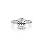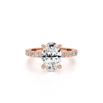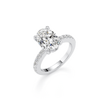 Celebrate timeless love with this oval-cut diamond engagement ring in classic yellow gold. The solitaire sparkles brilliantly at the center, while the slim pave band adds a delicate touch of luxury. A perfect blend of elegance and charm for every bride-to-be.