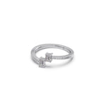 Add effortless elegance to your look with this modern twin emerald-cut diamond ring. Crafted in lustrous yellow gold, the open band design sparkles with two perfectly aligned emerald-cut diamonds, symbolizing balance and connection.