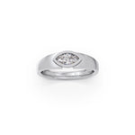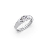 This elegant marquise diamond ring features a sleek yellow gold band with a bezel-set solitaire. Its clean lines and timeless shape make it perfect for everyday luxury or a unique engagement.