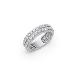 Shine brighter with this stunning double row diamond ring. Made in yellow gold, this ring features two rows of round-cut diamonds set all around the band. It's a bold and glamorous piece β perfect for special occasions or stacking with other rings.
