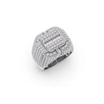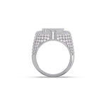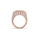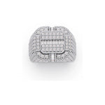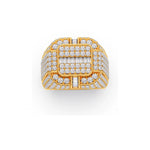Make a grand impression with this bold menβs diamond ring in pure yellow gold. Featuring a square center with baguette and round diamonds, this ring reflects true power and prestige.
