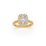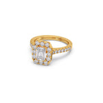 This emerald cut diamond ring in yellow gold features a dazzling halo of round diamonds, adding extra brilliance and sparkle. Perfect for proposals, anniversaries, or adding timeless charm to your jewelry collection. Crafted for elegance and shine, this ring stands out with a rich gold finish and precision-set stones.