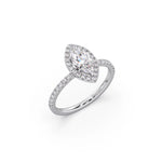 This exquisite marquise-shaped diamond ring in white gold features a stunning halo of smaller diamonds, offering an elegant and sophisticated look. With its timeless design and exceptional sparkle, this engagement ring is perfect for celebrating love, milestones, and forever moments.