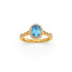 Blue Oval Gemstone Ring in Yellow Gold β Halo Diamond Design | JewelVerra