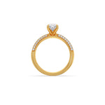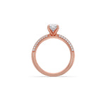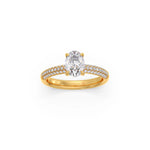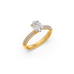 Shine bright with this stunning oval-cut diamond ring set in luxurious white gold. The center stone is flanked by three rows of sparkling pavé diamonds, giving it a bold, romantic look.