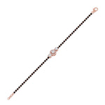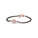 Stylish and traditional mangalsutra bracelet with black beads and a stunning round diamond surrounded by a delicate halo. A perfect choice for modern brides who love elegance with meaning.