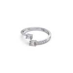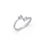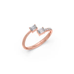 This open-style ring features two sparkling emerald-cut diamonds on each end, with small round diamonds on one side of the band. Crafted in yellow gold, it offers a modern yet elegant look. This ring is perfect for those who love simple, chic, and meaningful jewelry. Ideal for gifting, proposals, or stylish daily wear.