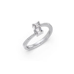 This modern and minimalistic two-stone diamond ring features twin emerald-cut diamonds on a polished yellow gold band. The sleek design is accented with tiny round diamonds on both shoulders, making it a perfect mix of contemporary style and timeless elegance. Ideal for everyday luxury, gifting, or stacking with other rings.