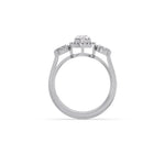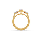 Shine bright with this pear-shaped diamond ring, beautifully surrounded by a shimmering halo of round diamonds and flanked by oval-cut side stones. Set in lustrous yellow gold, it’s a timeless statement of elegance and love—perfect for engagements or gifting.