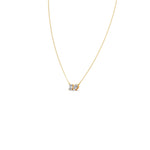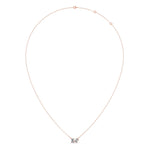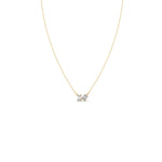 This Twin Shape Diamond Necklace is a mix of beauty and elegance. It features a unique pairing of a baguette-cut and round-cut diamond, side by side on a fine chain.
