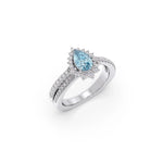 Teardrop-shaped aqua blue center stone
